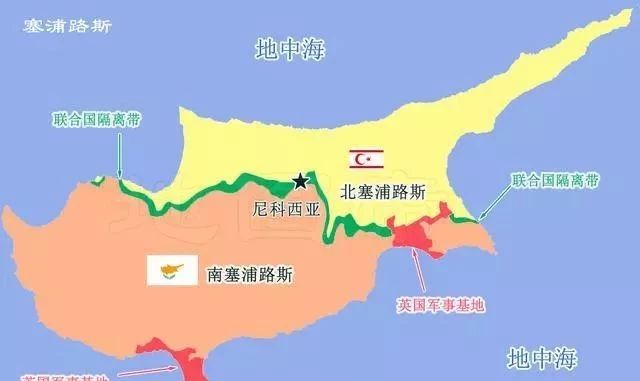 塞浦路斯是個被一分為二的國家,簡單來說,這個國家有北塞和南塞兩個部分,由兩個政權控制,北塞基本由土耳其控制,南塞由希臘控制。這個國家的東南角還有一塊屬于英國的殖民領土。