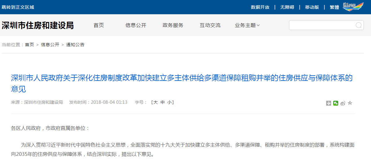 2018年8月3日,深圳最終版的《深化住房制度改革加快建立多主體供給多渠道保障租購并舉的住房供應與保障體系的意見》正式發布,這意味著,被稱為先試先行的深圳房改,終于正式落地!