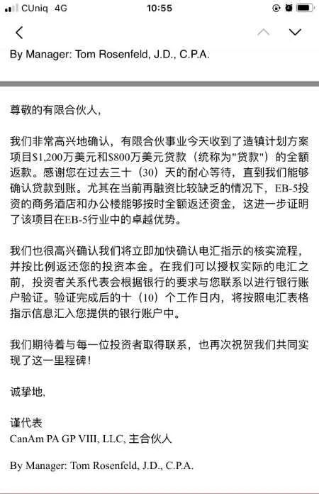 近日,我司與CanAm基金合作的美國賓州造鎮項目傳來好消息,借款方已將到期的EB-5貸款償還至本項目有限合伙企業,接下來將為符合還款資格的投資人展開還款程序,這也是緯博參與的第36個EB-5還款項目。