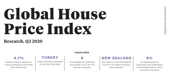 近日,知名房地產咨詢服務公司——萊坊國際(Knight Frank)發布了2020年第二季度全球房屋價格指數。根據該指數,從全球來看,第二季度房價較去年同期上漲了4.7%。在該指數追蹤和比較的所有56個國家中,土耳其以25.7%的年度漲幅位居榜單第一。