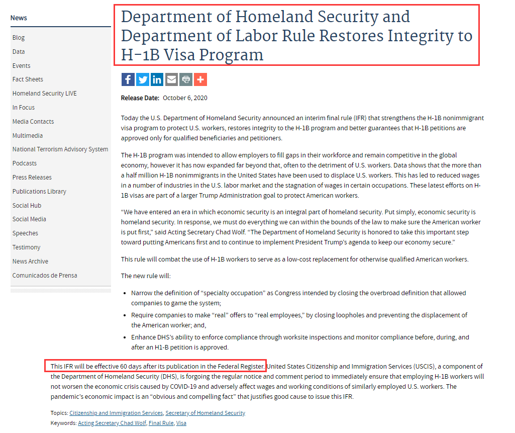 美國國土安全部和勞工部6日聯合發布消息,大幅度提高外國技術工種非移民工作簽證(H1B)雇傭薪資要求,并要求企業雇傭外國技術勞工需“專業對口”,被稱為20年來最嚴新規。新規于10月8日開始執行。據專家預測,實施后約有三分之一的H-1B申請人將被拒。事實上,最近一兩年H1B對申請人的學歷、經歷、職務、背景燈審查更加嚴格,可以預見未來H1B的審核越來越難,條件越來越嚴峻。