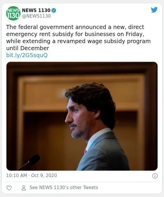 加拿大聯邦政府周五(10月9日)宣布新一輪的紓困計劃,其中一項新的商業/企業直接緊急租金補貼(Canada Emergency Rent Subsidy)用于幫助小商業渡過難關,同時修訂后的工資補貼計劃將延長至12月底。加拿大總理特魯多強調,新一輪商業企業紓困計劃,是為了幫助企業留住員工,并在接下來的幾個月提供支持。