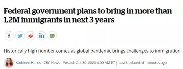 當地時間10月30日,加拿大移民部長馬可·門迪基諾公布了一項為期三年的移民計劃。加拿大計劃在未來3年,狂攬總計接收123.3萬新移民,創下歷史記錄。比先前的計劃,每年多接收5萬!