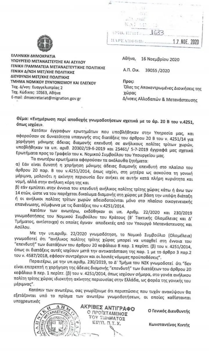 希臘政府對4251/2014號希臘移民法-第20B條法規做出更新提案,擬出臺法案:第三國未成年人可以購房做主申請人,頒發投資者永久居留許可。提案如果落地,未成年人(建議14周歲以上)可以成為希臘購房移民的主申請人,攜帶父母一起申請移民!這樣就避免了父母做主申請人帶孩子,孩子超過21周歲的續卡問題。