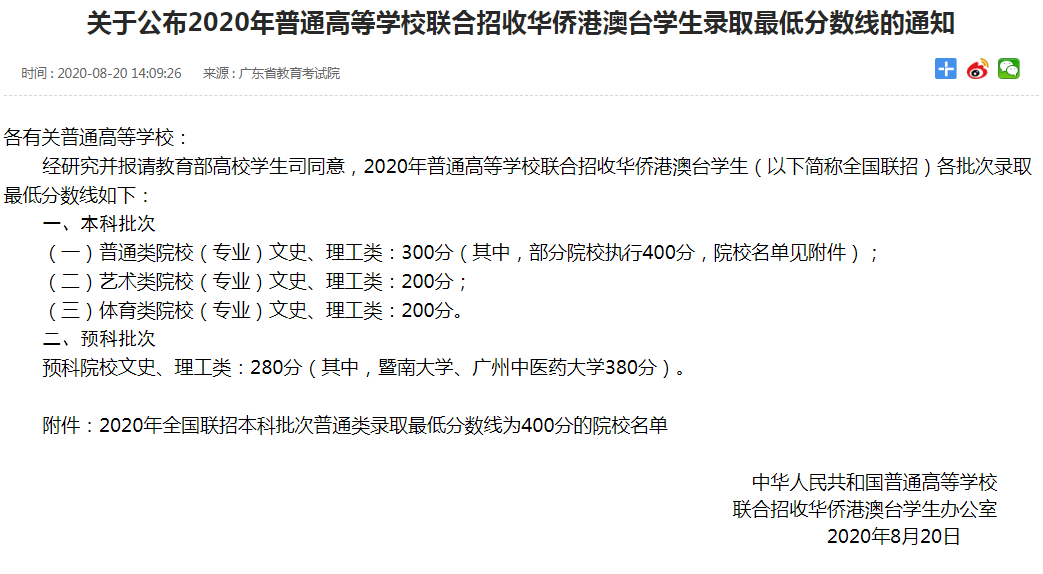 2020 年華僑生比普通高校生錄取分數線低 110 分以上,部分院校最低分數線按 400 分執行,清華北大就在其列。