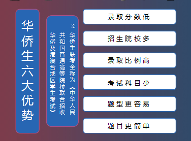 華僑生聯考全稱為《中華人民共和國普通高等院校聯合招收華僑及港澳臺地區學生考試》,是中國教育部單獨為海外華僑和港澳臺學生設計的專門高考,以滿足海外華僑及港澳臺學生回祖國內地接受高等教育的愿望,為他們提供入讀內地大學的機會。
